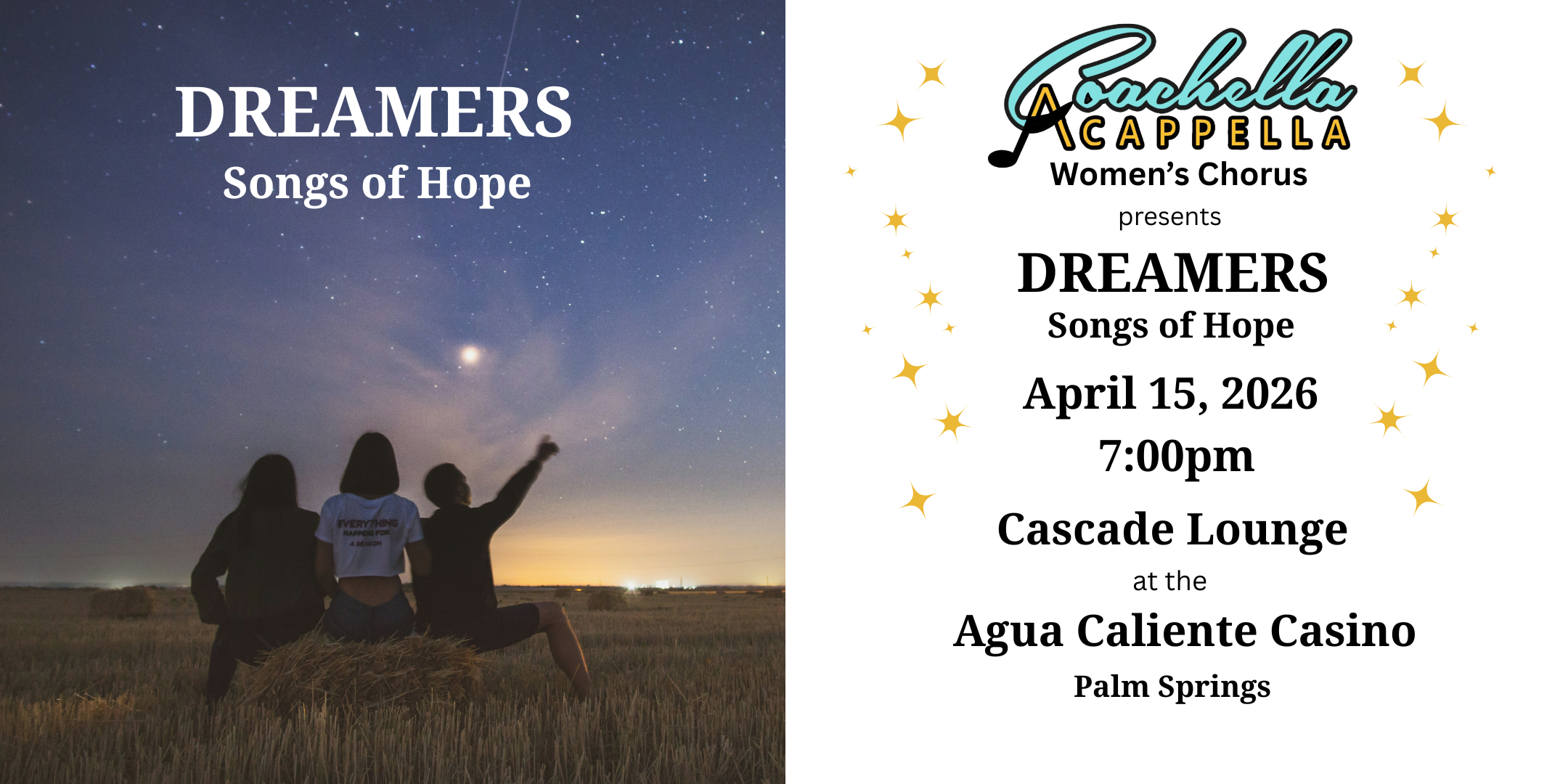 5:00pm, Thu, Apr 2 2026Annual Show - "Dreamers - Songs of Hope" at the Cascade Lounge